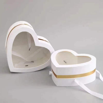 Kuti dhuratash me formë zemre dhe kapak transparent, për lule dhe surpriza romantike