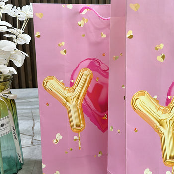 Çantë kartoni me figura zemrash e tortash dhe shkrim “Love”