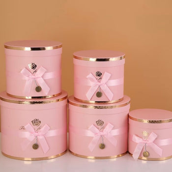 Kuti paketimi per lule në formë vazo, rrethore me aksesor gold