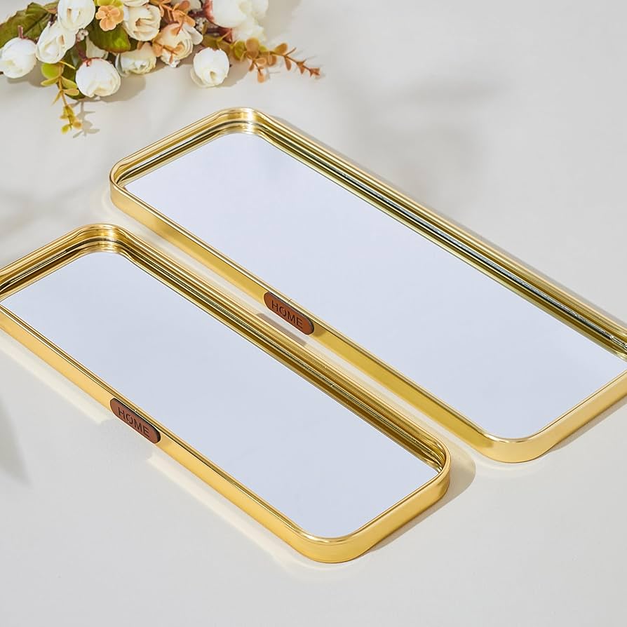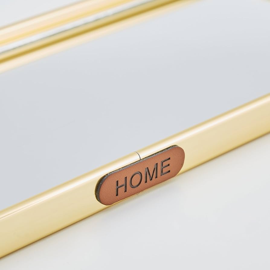 Pasqyrë drejtkëndore me kontur gold dhe etiketë “Home”