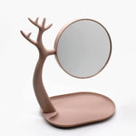 Pasqyrë kozmetike me drita dhe hapësirë për të vendosur make up- e