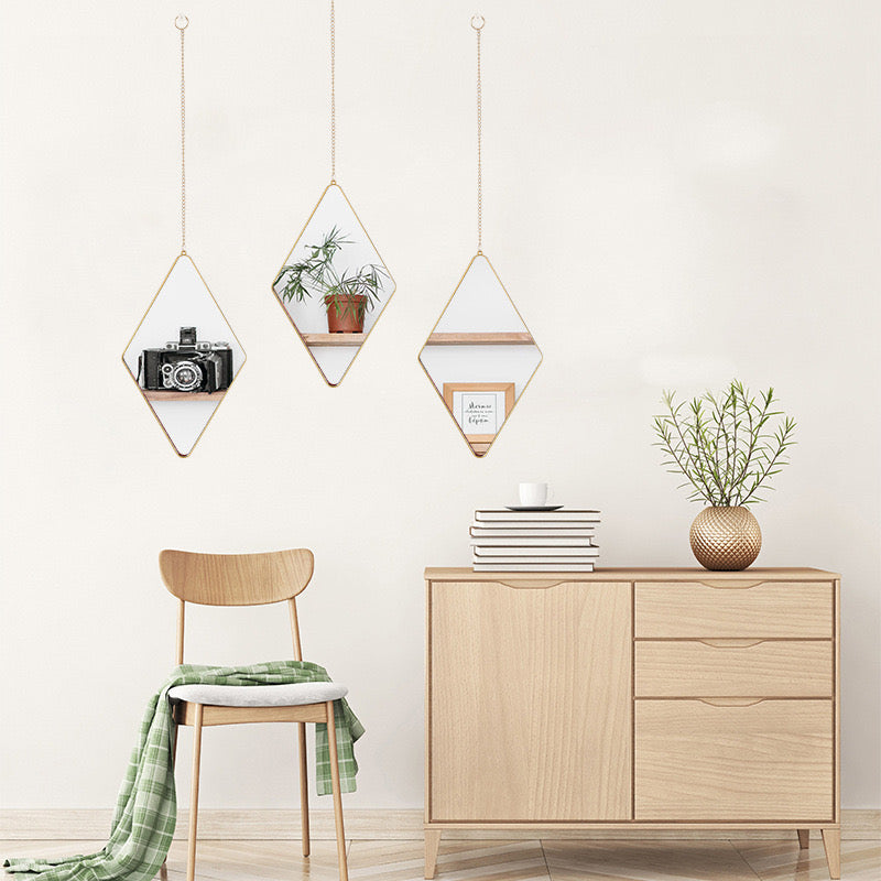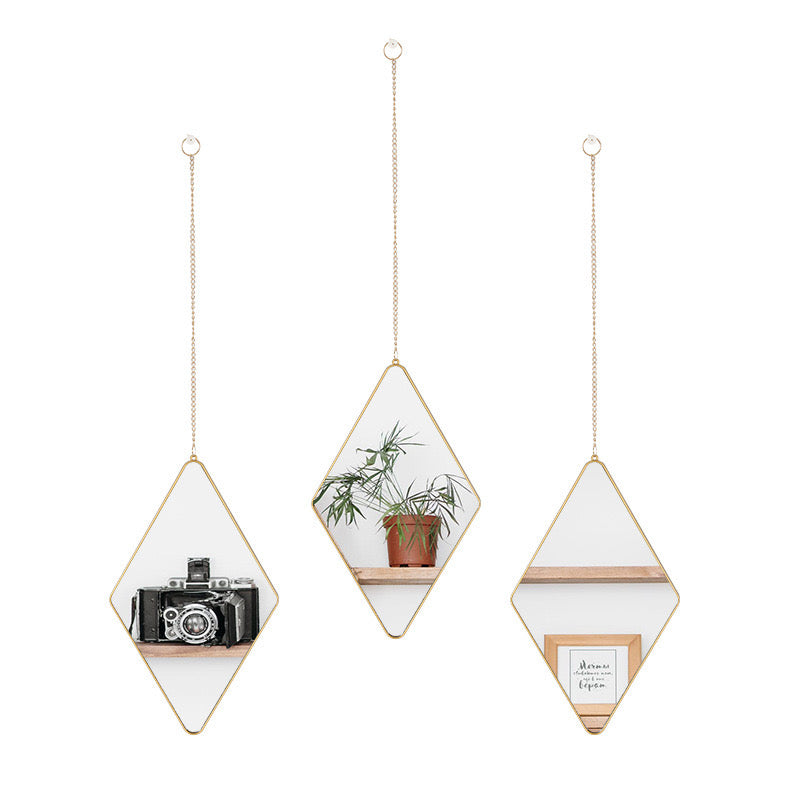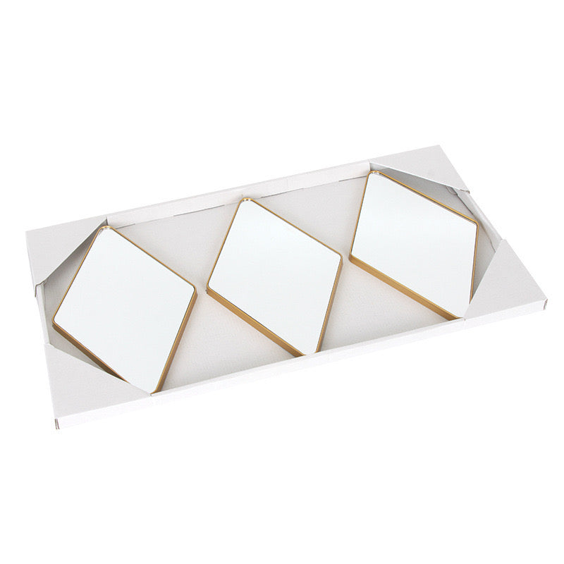 Set me 6 pasqyra dekorative në formë rombi; Ngjyra: Gold; Përmasat si në foto: