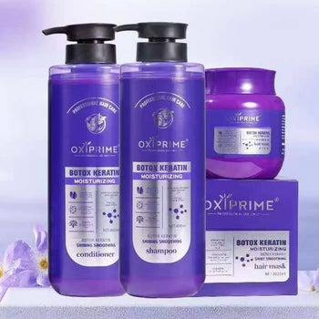 Oxiprime Botox Keratin Shining Smoothing shampoo, zbutës dhe maskë
