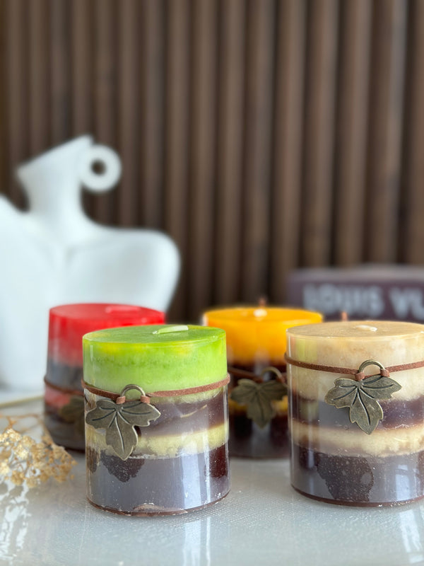 Specifikim Materiali: parafinë Ngjyra: kafe/ jeshile/ portokalli/ e kuqe/ bezhë/  Dimensionet: 6.6*H7.3cm