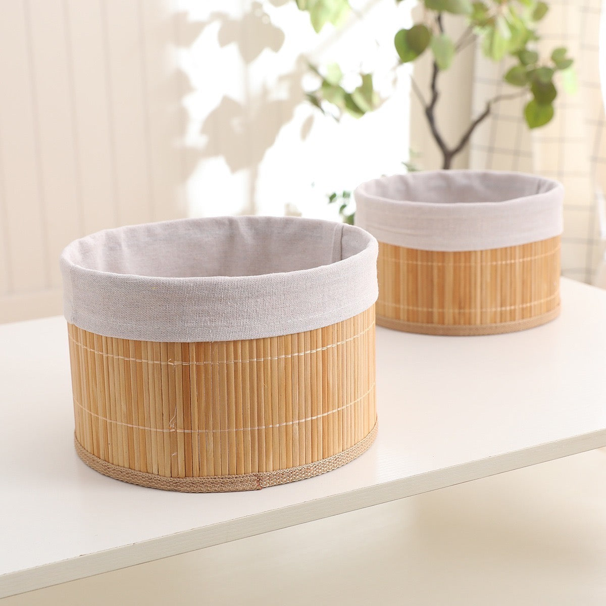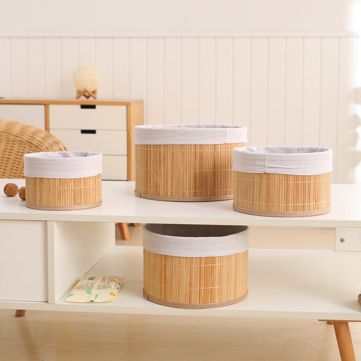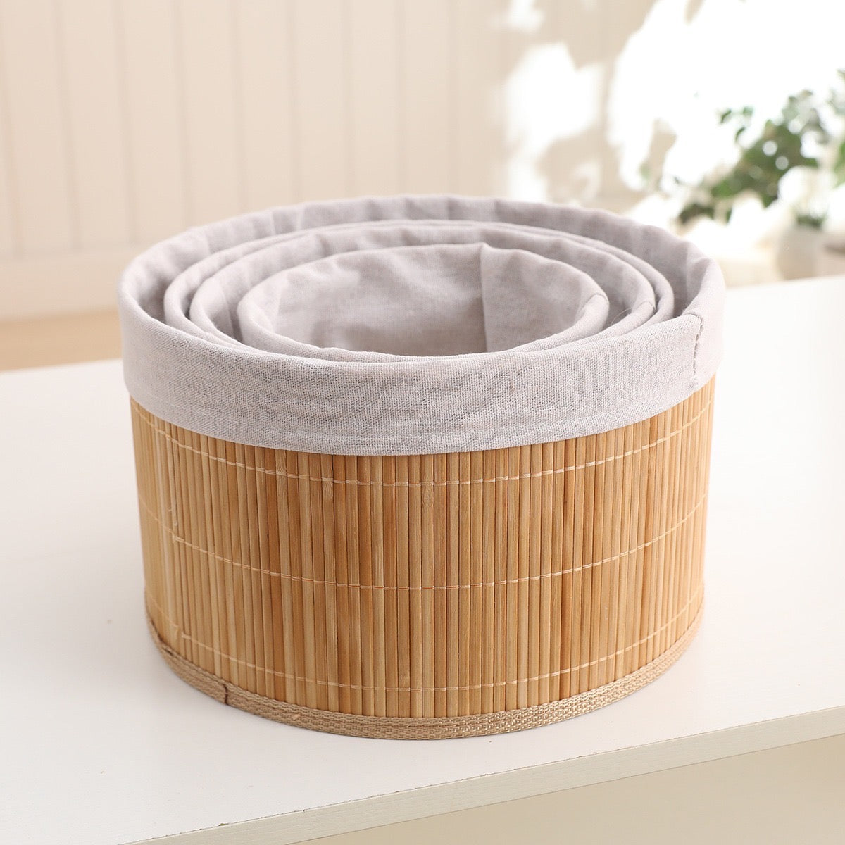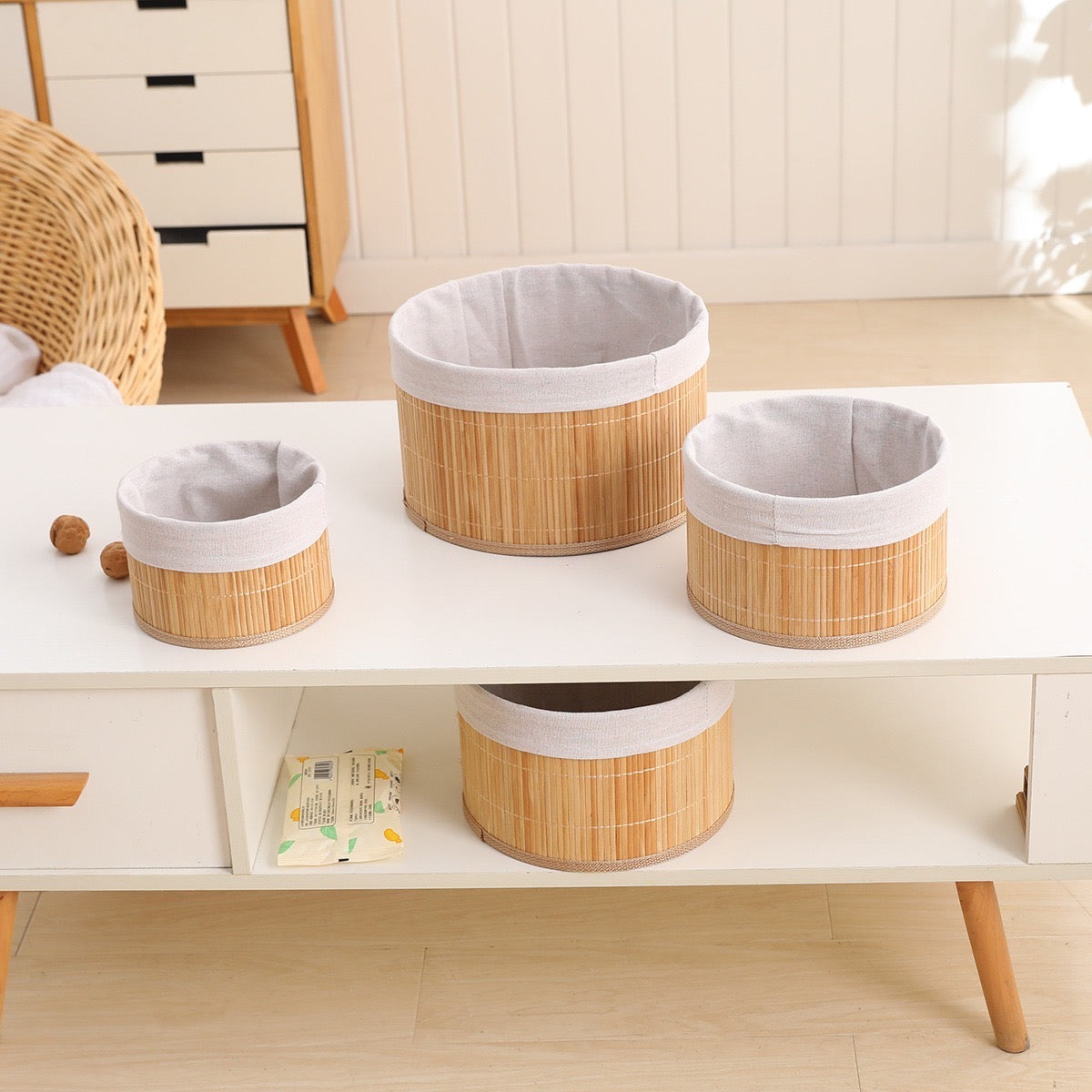 Shporta bamboo multifunksionale, në formë rrethore, set 3 copë