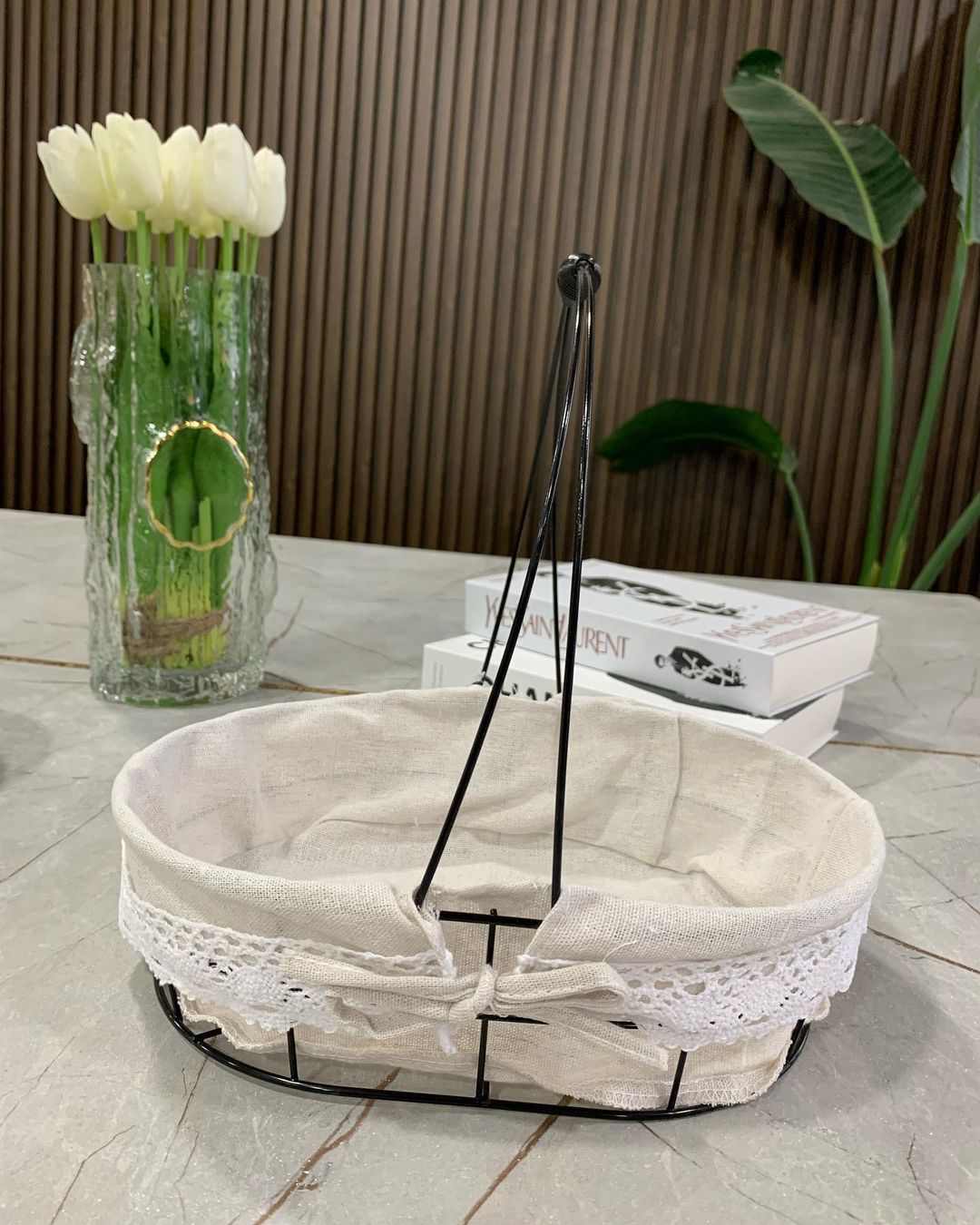 Shportë buke 🤩Shportë buke me tela metalik si dhe mbajtëse prej cope pambuku. 🤩E përshtatshme për mbajtjen e bukës gjatë vakteve tuaja.🤩Mund ta përdorni edhe si shportë pikniku.🤩Material: plastikë +...