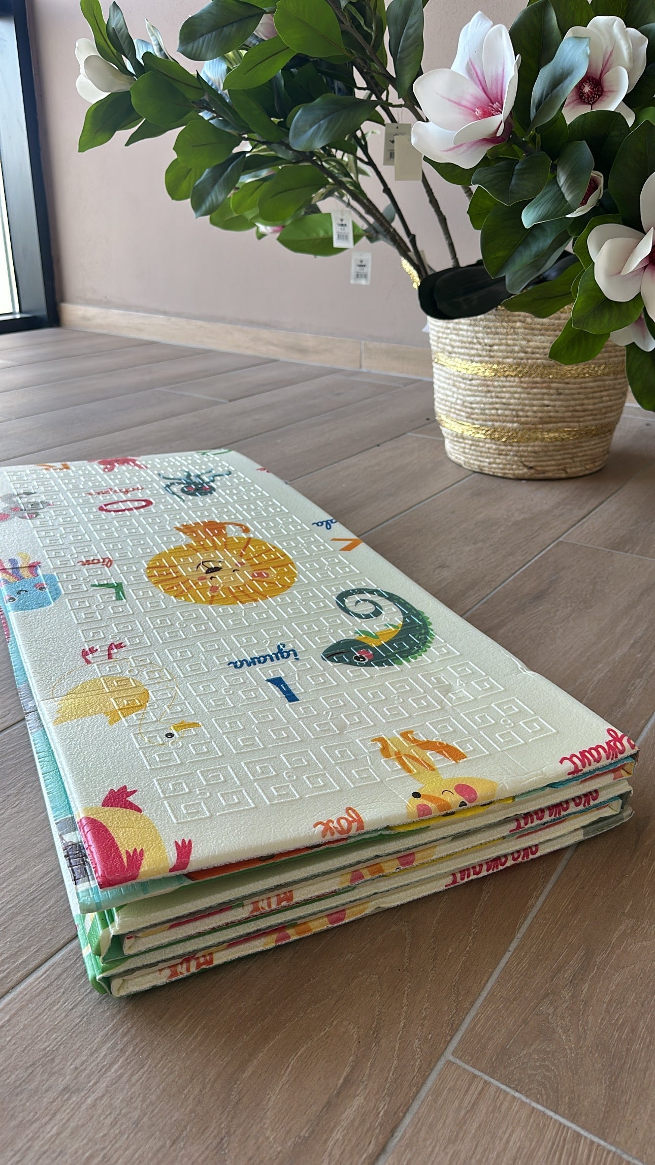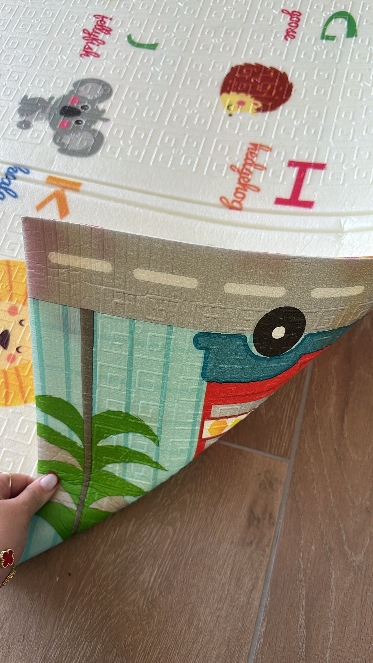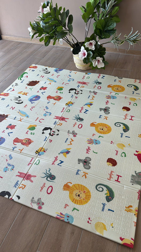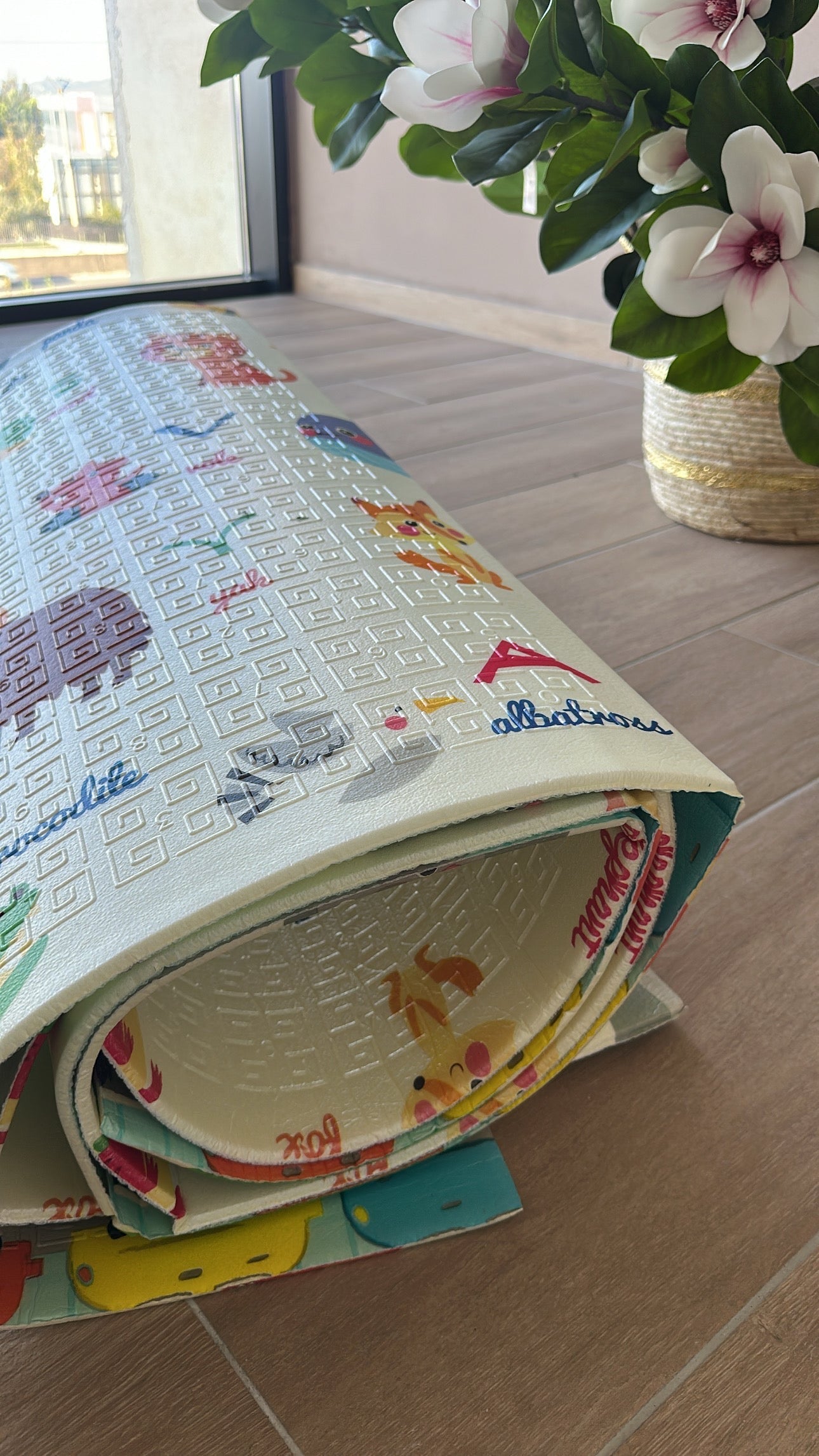 Tapet shkume për bebe, i butë dhe i sigurt për lojë dhe zhvillim. Ofron komoditet dhe mbrojtje, me dizajn me ngjyra të gjalla që stimulon imagjinatën e foshnjës.
