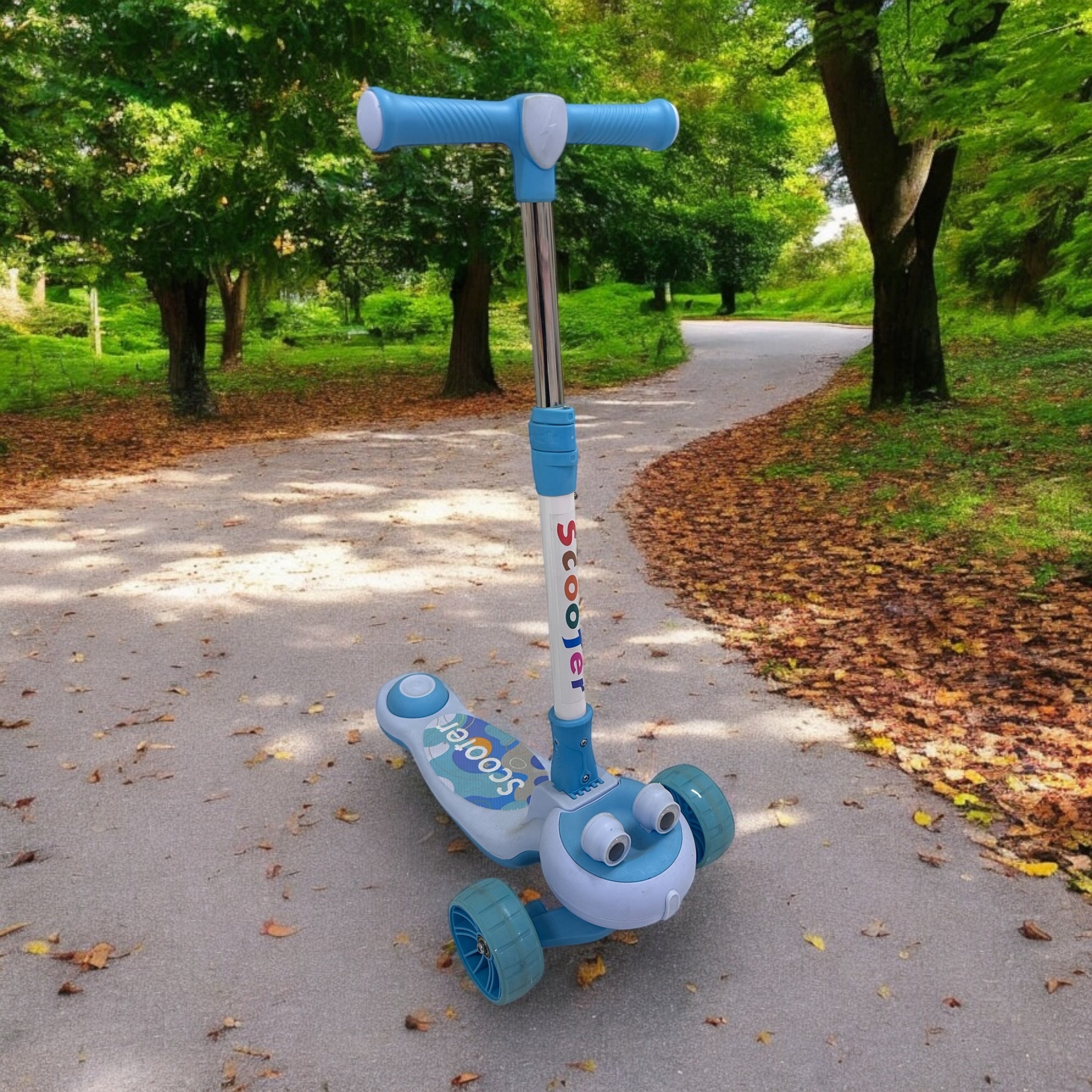 Skuter për djem; Materiali: Plastik dhe Metal; Mosha: + 3 vjeç; Me bateri; Me drita; Gjatësi deri në 78 cm; 3 nivele zgjatimi