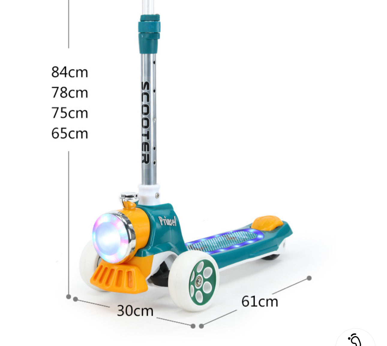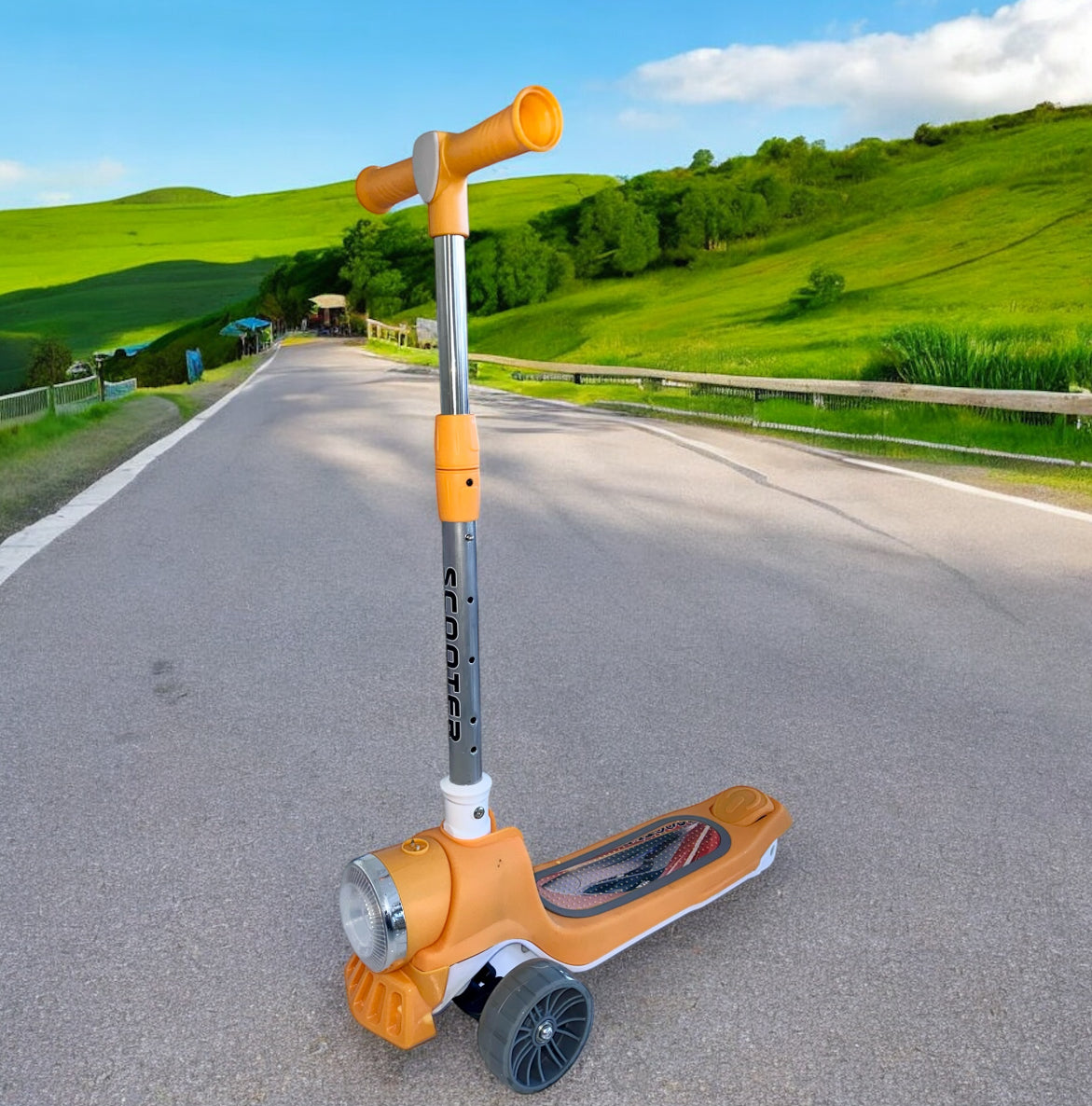 Skuter për fëmijë ngjyrë portokalli; Për djem; Me drita; Materiali: Plastik dhe Metal: Mosha:+ 3 vjeç; Përmasat si në foto: