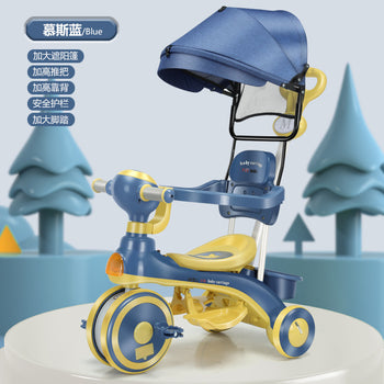 Karrige ngrënie për bebe me dizenjo abstrakte blu dhe të verdhë