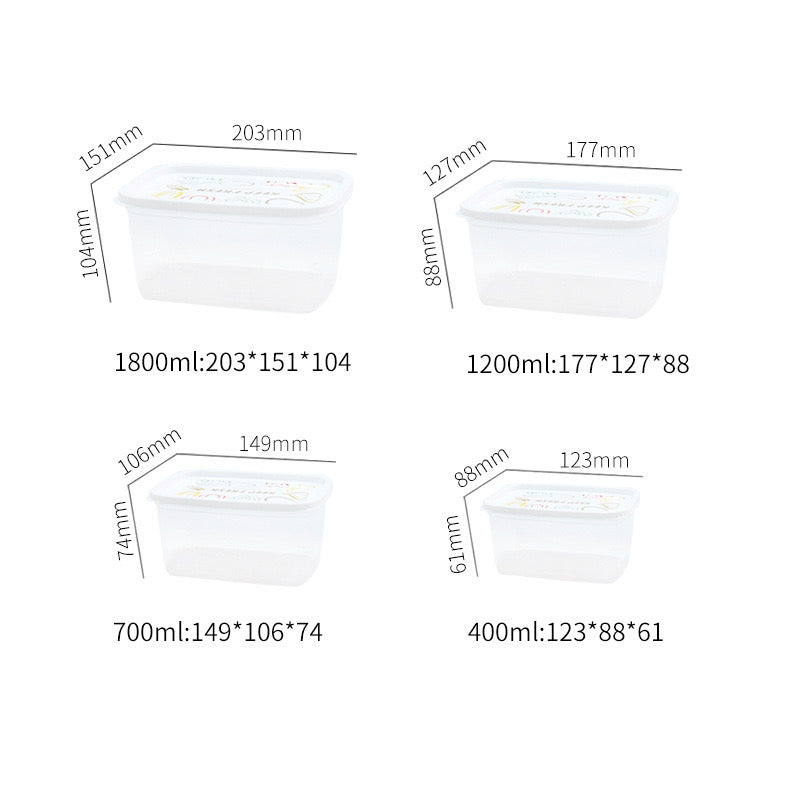 Set me 4 tasa drejtkëndore “Keep Fresh” të përmasave të ndryshme
