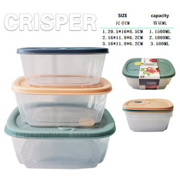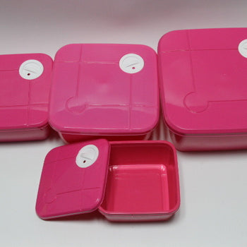Set me 3 tasa plastik drejtkëndor me kapak dhe kapak me vakum