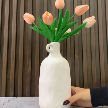 Vazo qeramike e bardhë në formë shtambe me grykë të ngushtë