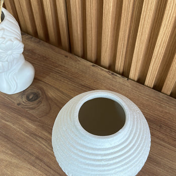Vazo qeramike në formë rrethore me vijëzime të përdredhura