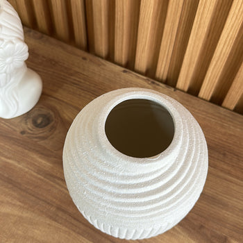 Vazo qeramike me damarë vertikal & horizontal me sipërfaqe me kokrriza