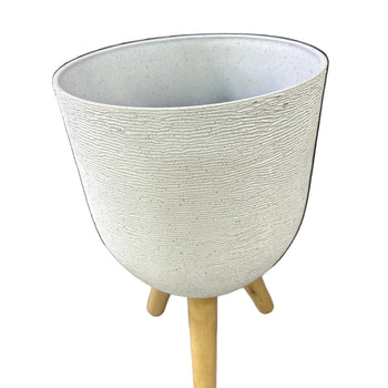 Vazo me 3 këmbë druri, me dizenjo vija të valëzuara dhe pika të zeza