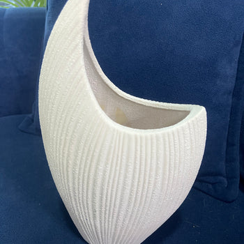 Vazo qeramike me grykë gjysmëhënë, me damarë vertikale