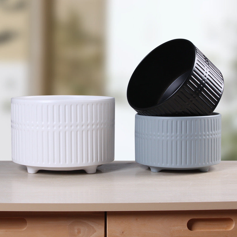 Materiali: qeramike  Ngjyra: e bardhë, e zezë  Dimensionet: 24.5*16.8cm / 20.5*12.7cm / 16.5*10cm