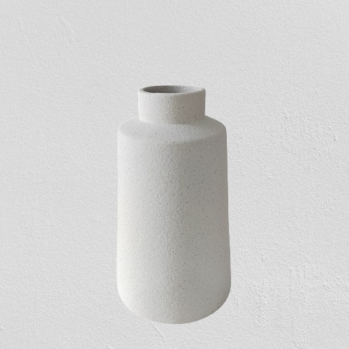 Vazo qeramike e bardhë në formë shtambe me grykë të ngushtë