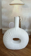 Vazo dekorative prej qeramike me dizajn modern dhe formë artistike. E punuar me kujdes për të sjellë elegancë dhe stil në çdo ambient, ideale për lule ose si dekor më vete në shtëpi apo zyrë.