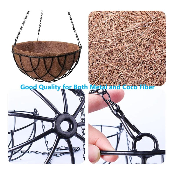 Vazo e varur metali me fibër arre kokosi; Përmasë e vogël; Gjatësi zinxhiri 34 cm; Diametër 20 cm