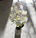 Vazo qeramike e bardhë në formë shtambe me grykë të ngushtë me përmasa baza 10 cm x H23 cm