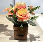 Vazo e vogël me lule të ndryshme; Ngjyra: Vazo blu me lule të bardha, vazo rozë me lule rozë; Gjatësi: 20 cm
