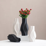 Vazo qeramike dekorative me formë moderne dhe dizajn abstrakt. E punuar me teksturë mat dhe ngjyrë neutrale, përshtatet në mënyrë perfekte me çdo stil arredimi. Ideale për lule artificiale ose...