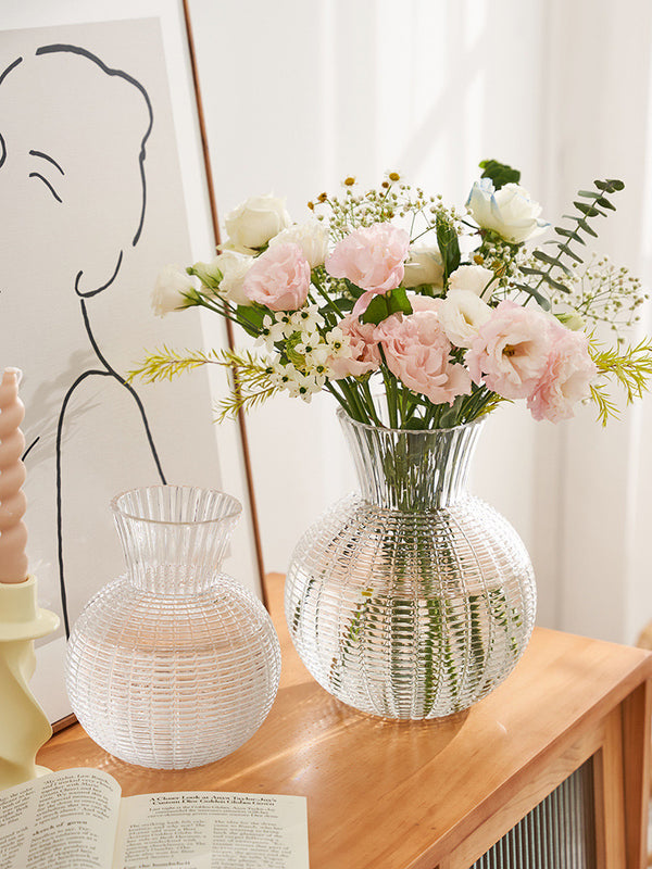 Vazo qeramike me damarë vertikalë dhe horizontalë, me dizajn modern dhe elegant që përshtatet në çdo ambient. Ideale për lule ose si dekor më vete, duke shtuar stil dhe finesë...
