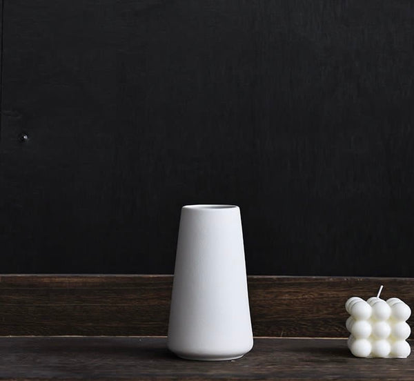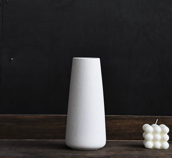 Vazo qeramike e bardhë në formë shtambe me grykë të ngushtë
