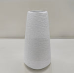 Vazo qeramike e bardhë në formë shtambe me grykë të ngushtë me përmasa baza 10 cm x H23 cm