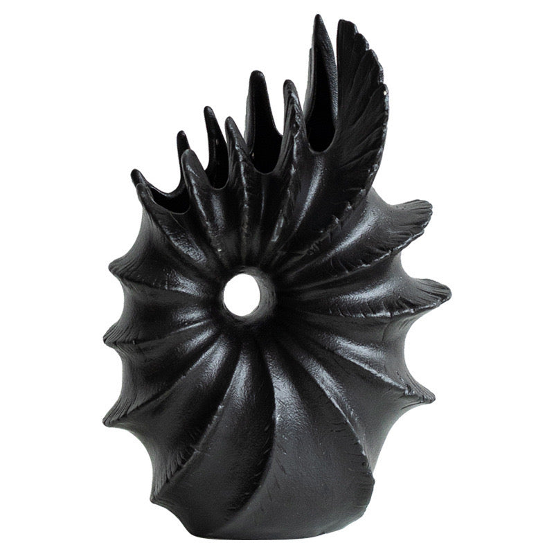 Vazo qeramike me grykë gjysmëhënë, me damarë vertikale
