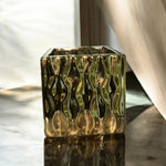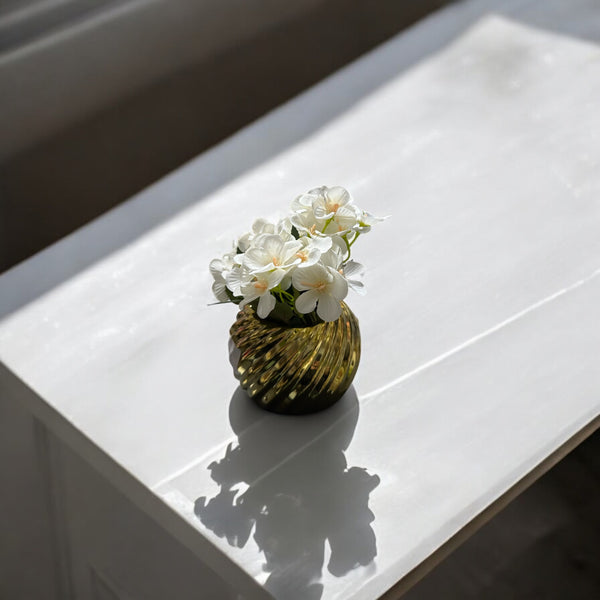 Vazo rrumbullake gold me valëzime; Materiali: Qelq; Gjatësi: 10 cm; E përshtatshme për dekorim të stilit modern