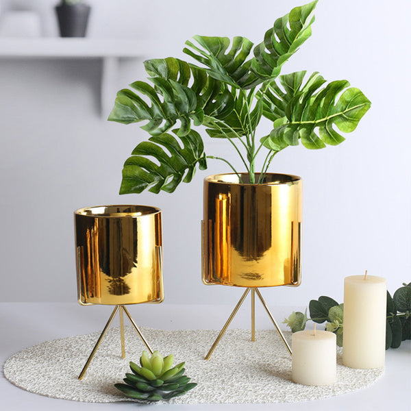 Vazo të vogla gold me shkëlqim; Stil modern; Materiali: Qeramike