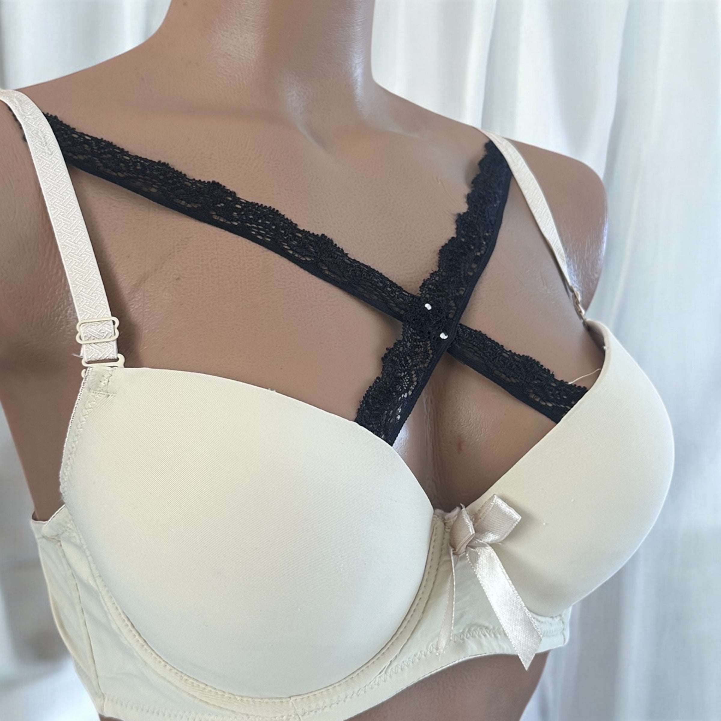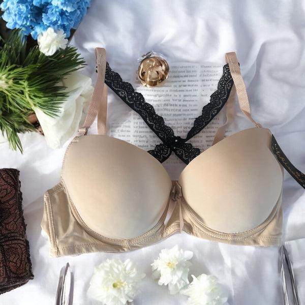 Reçipeta me kupa e efekt push up; detaje dantelle; me fjongo; Material i rehatshëm; Ngjyrat: Bezhë, e bardhë, e zezë
