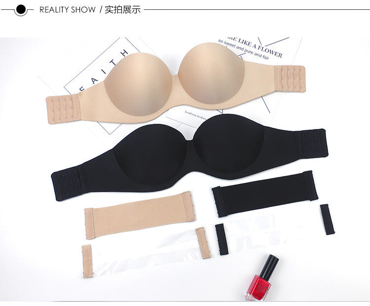 Reçipeta bust me dy lloje rripash njëi prej tyre i tejsukshëm; për të shmbangur rripat për veshjet bust; E cup; Ngjyra: E zezë, bezhë; me push up; 4 nivele ngushtimi