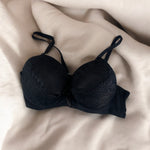Reçipeta me kupa e efekt push up; detaje dantelle; me fjongo; Material i rehatshëm; Ngjyrat: Bezhë, e bardhë, e zezë