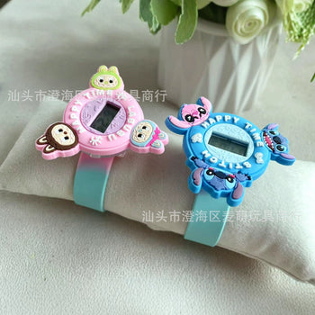 Orë me ekran dixhital për fëmijë me shkrim "Happy Time" me Labubu ose Stitch