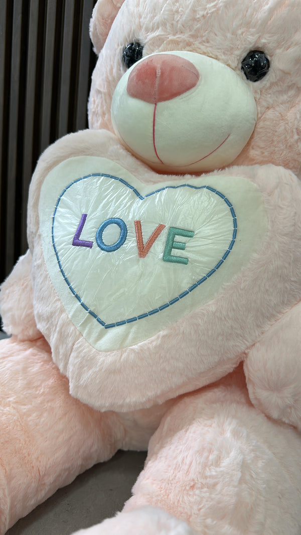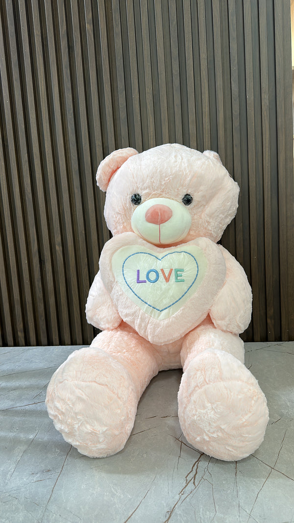 Arush pellushi rozë e butë. Mban në  duar zemër me mbishkrimin “Love”. Material cilësorë dhe shumë i butë në prekje. Përmasa: 90cm.