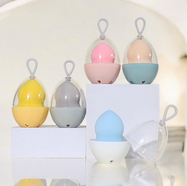 Beauty blender me mbajtëse në formë veze dhe zemra; miks ngjyrash; për përhapjen e fondatinës; përdoret edhe e largur edhe e thatë