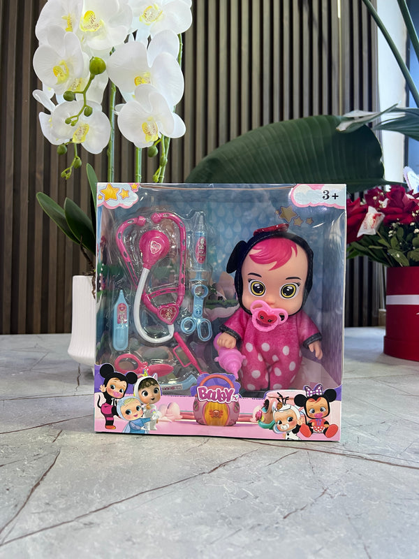 Kukulla "Cry Baby” si varëse çelsash, me 6 modele të ndryshme blu, jeshile, kafe, e verdhë, rozë, bezhë; Paketim transparent