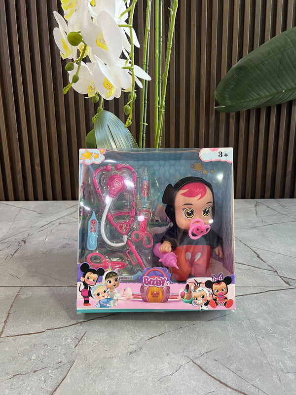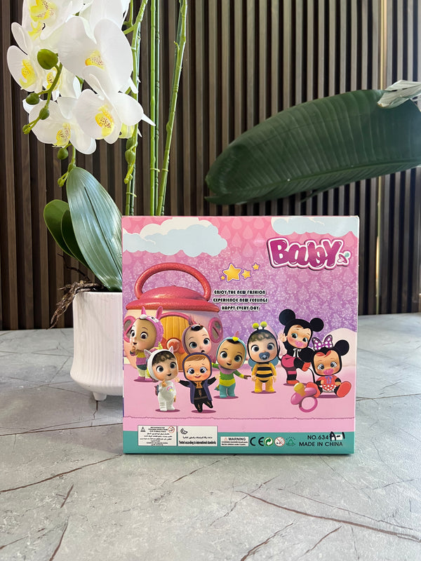 Kukulla "Cry Baby” si varëse çelsash, me 6 modele të ndryshme blu, jeshile, kafe, e verdhë, rozë, bezhë; Paketim transparent