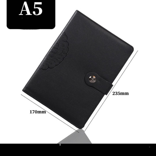 Lloji formatit: A5Përmasat: 23.5x17cmNgjyra: gri, e zezë, vishnje e errët 👉 Me kapak lëkure dhe mbyllje praktike