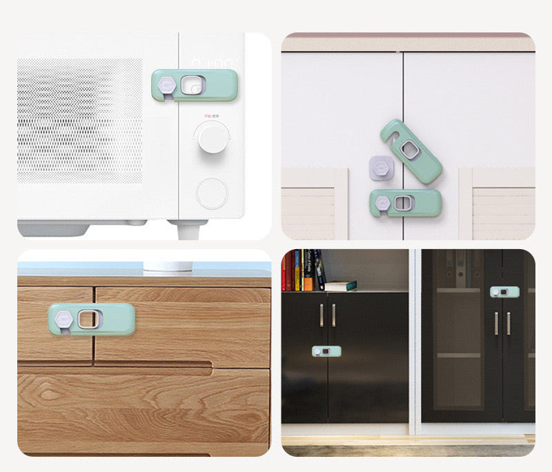 Bllokues sigurie për dollapë dhe sirtarë me buton rrëshqitës 360°