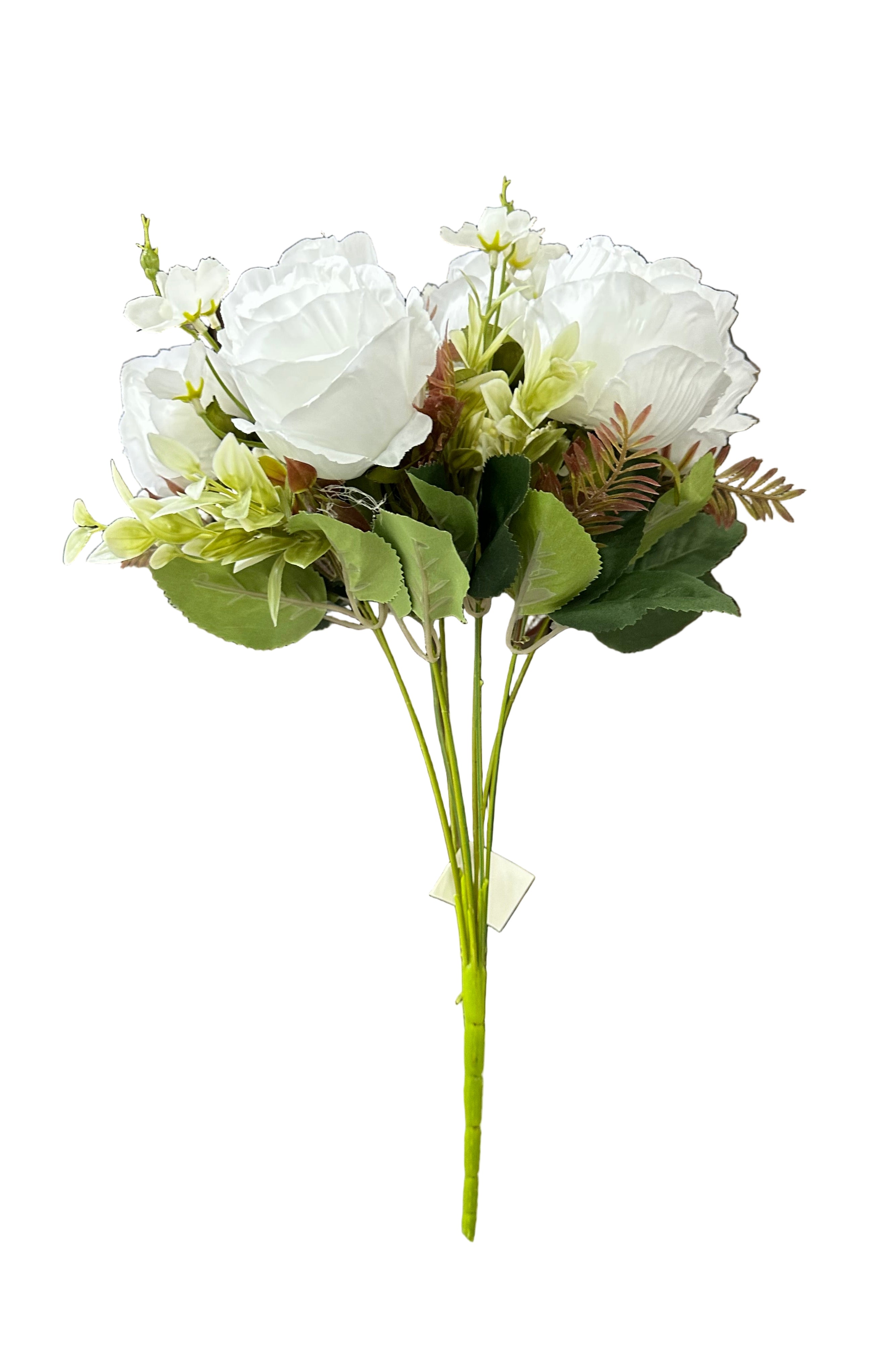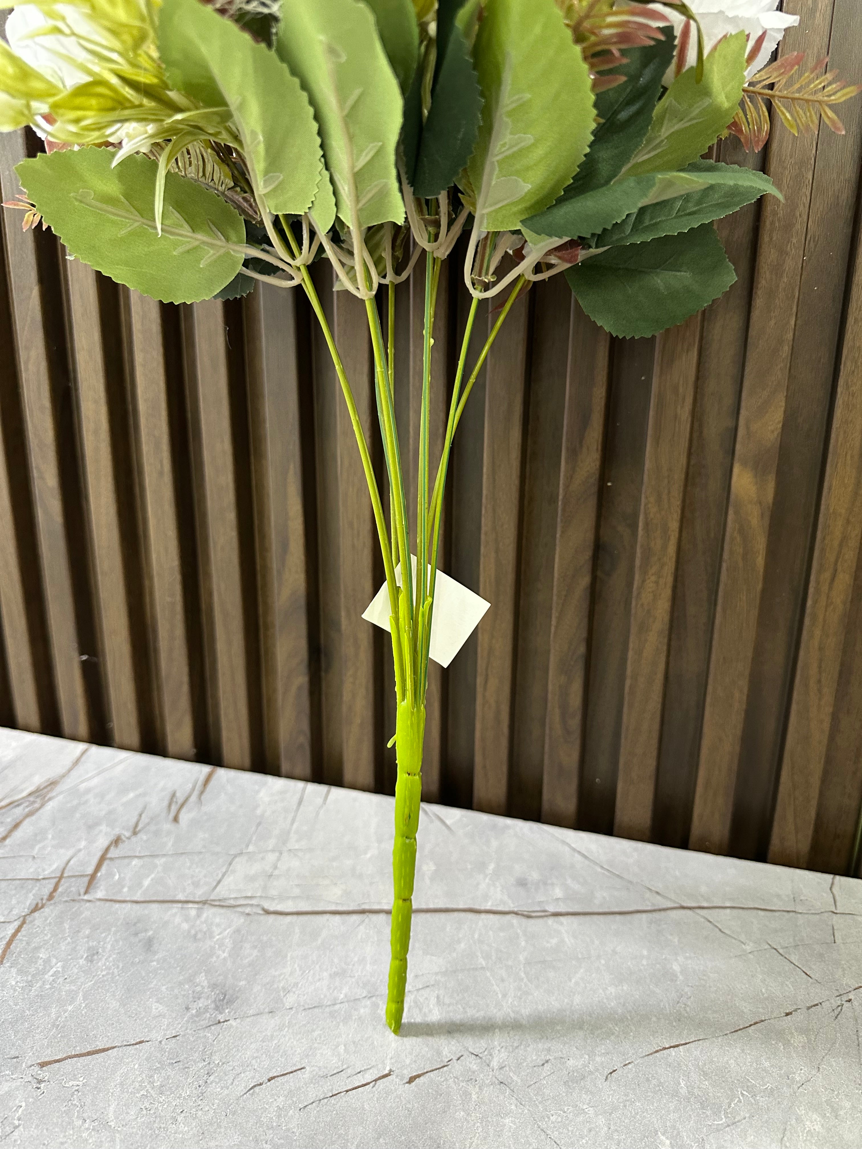 Buqetë artificiale me trëndafila të bardhë dhe detaje jeshile. Pamje natyrale, e përshtatshme për çdo dekor apo ambient festiv. Ngjyra: Bardhë. Përmasat: 45 cm. 1 degë. Përdorimi: Për shtëpi dhe...