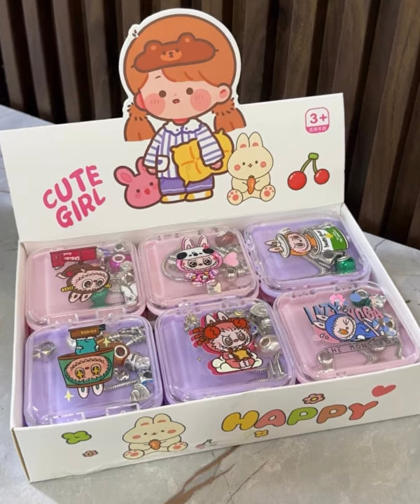 Byrzylyk me medaliona me Labubu me modele të ndryshme në ngjyra kutie rozë e lejla, pako me 18 copë✨