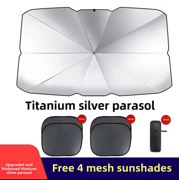 Mbrojtese xhami makine ne forme cadre, mban makinen tuaj te fresket dhe te rehatshme ne diellin e nxehte. Funksionon njesoj si nje cader, hapet per t’u zgjeruar dhe pershtatet lehtesisht...