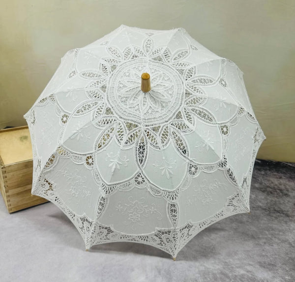 Çadër për diellin vintage me thurje në ngjyrën e bardhë, material cope dhe bisht druri✨