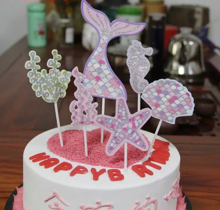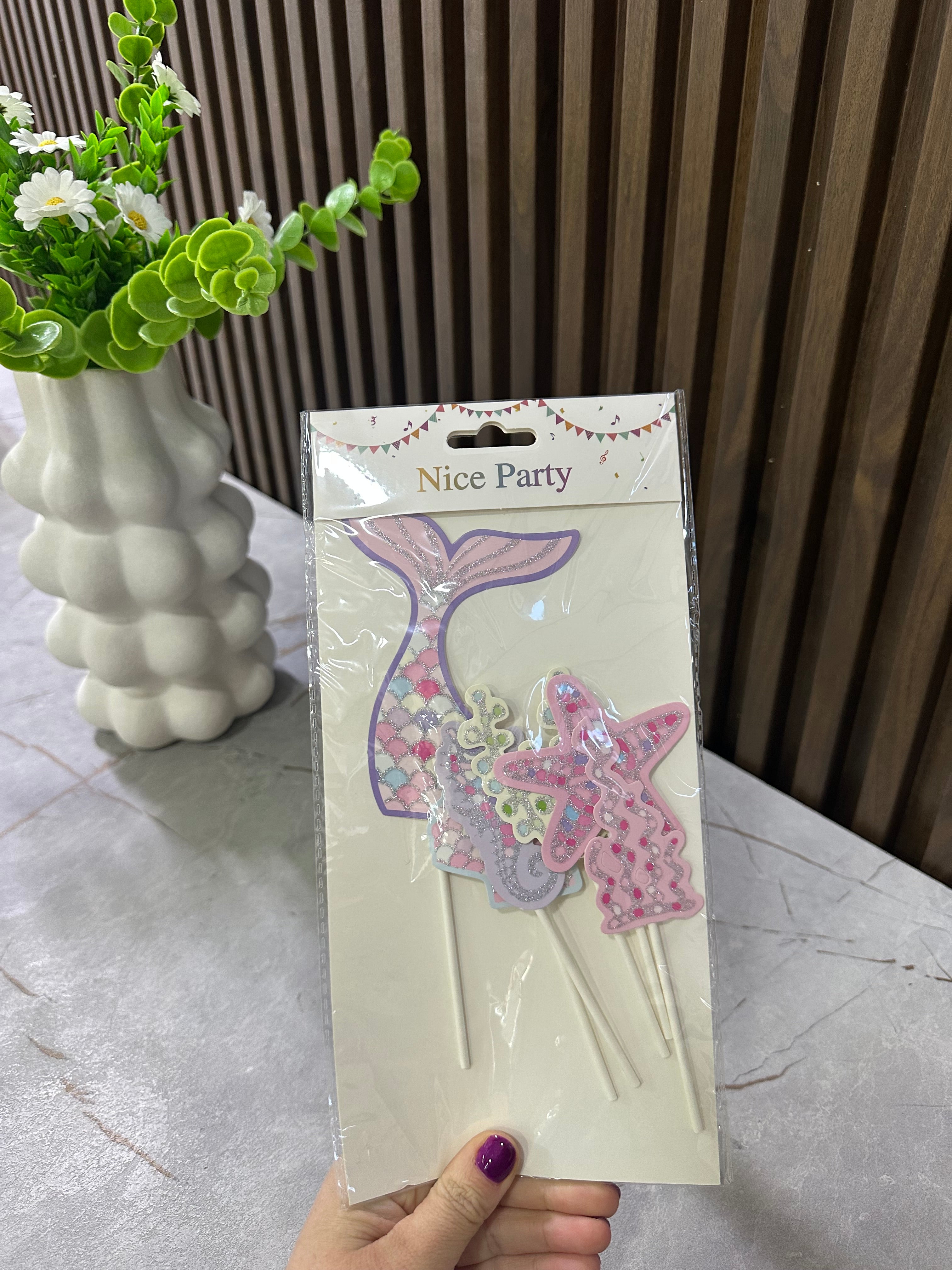 Cake topper me temë sirene, ideal për zbukurimin e tortave të ditëlindjes për fëmijë.