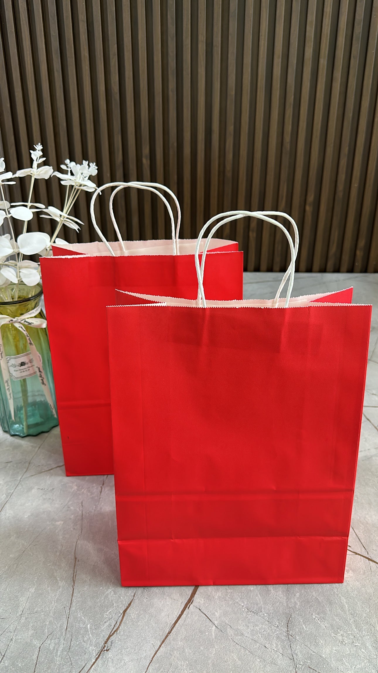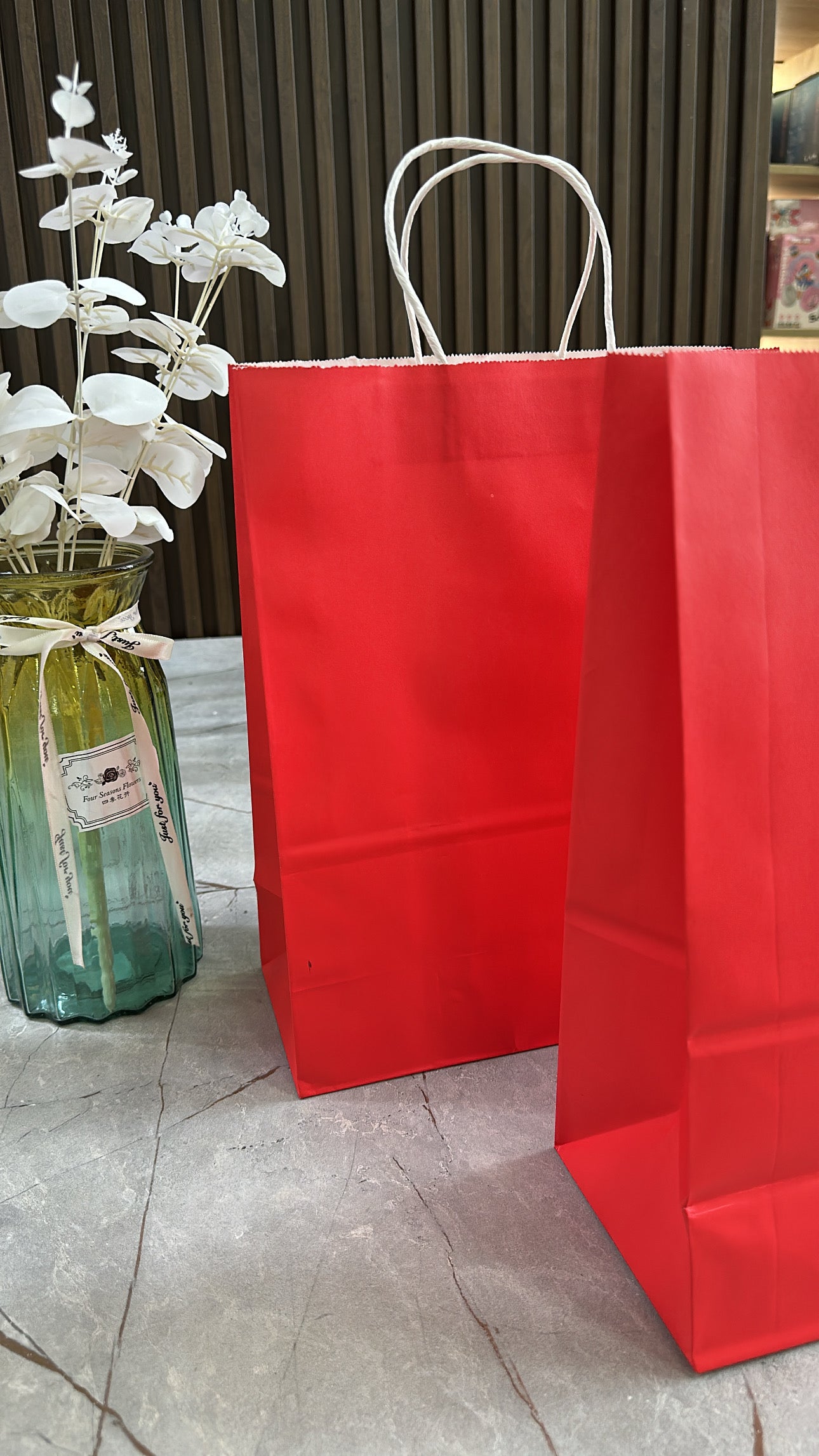 Çantë kartoni e kuqe – me material të fortë dhe ngjyrë elegante, perfekte për dhurata, evente apo raste festive. Përmasa: 26 x 13 x 34cm.